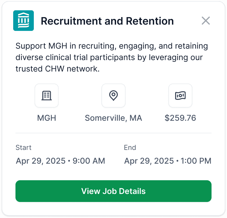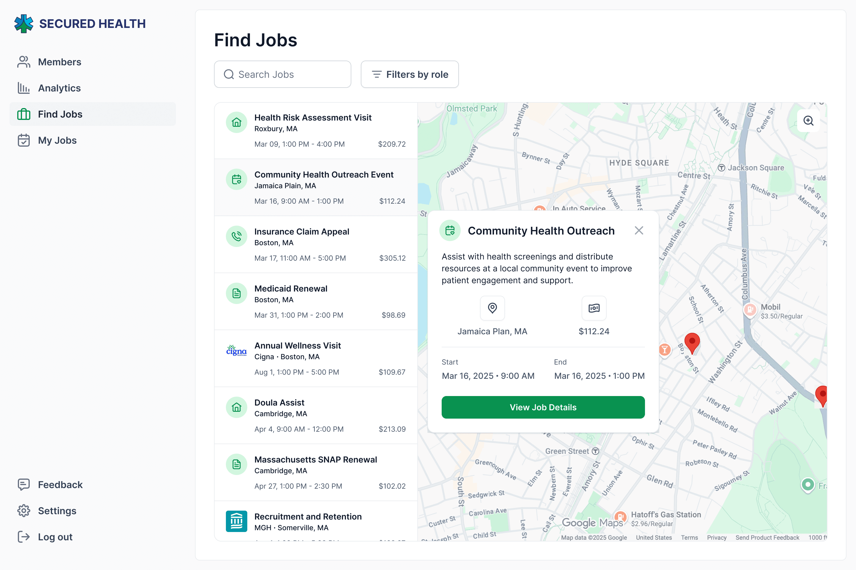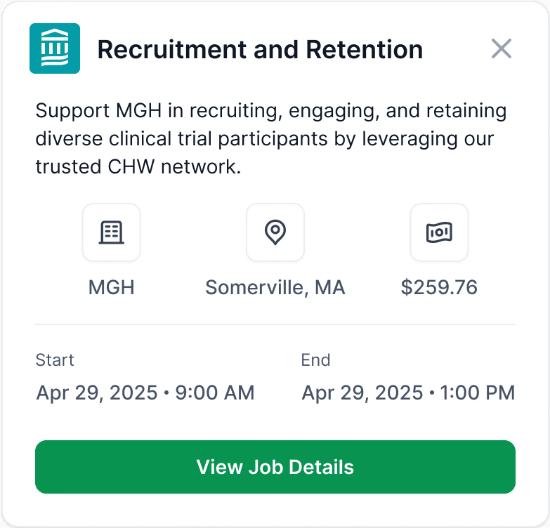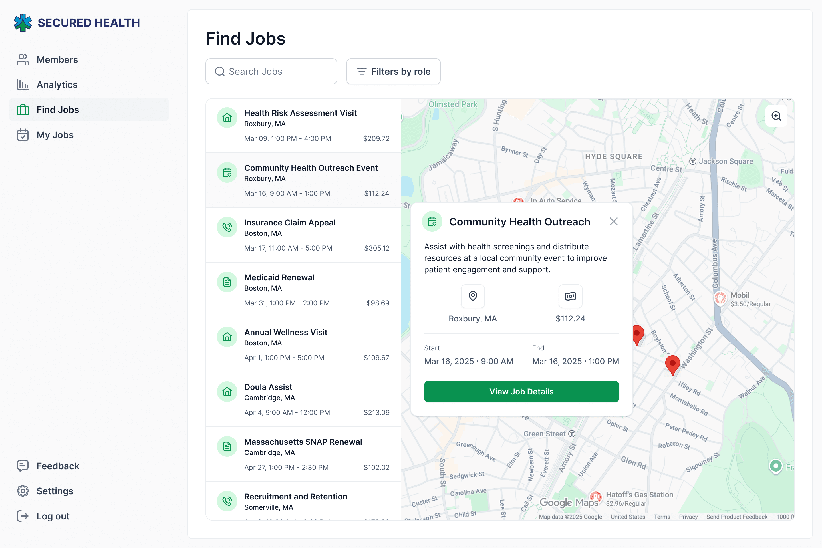 Create a map view for CHWs to view available jobs in their area, with an option to view full job details